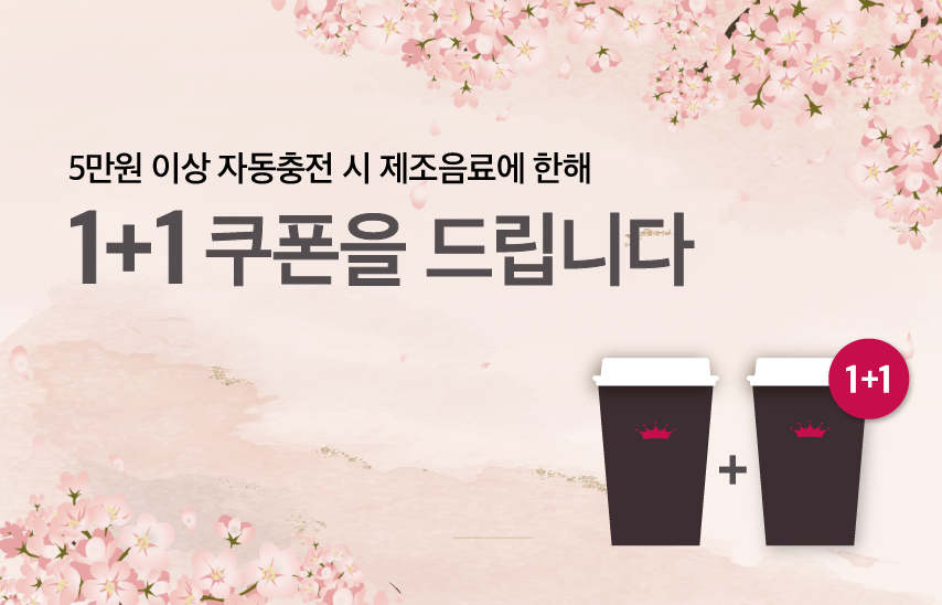 5만원 이상 자동충전 시, 1+1쿠폰 증정